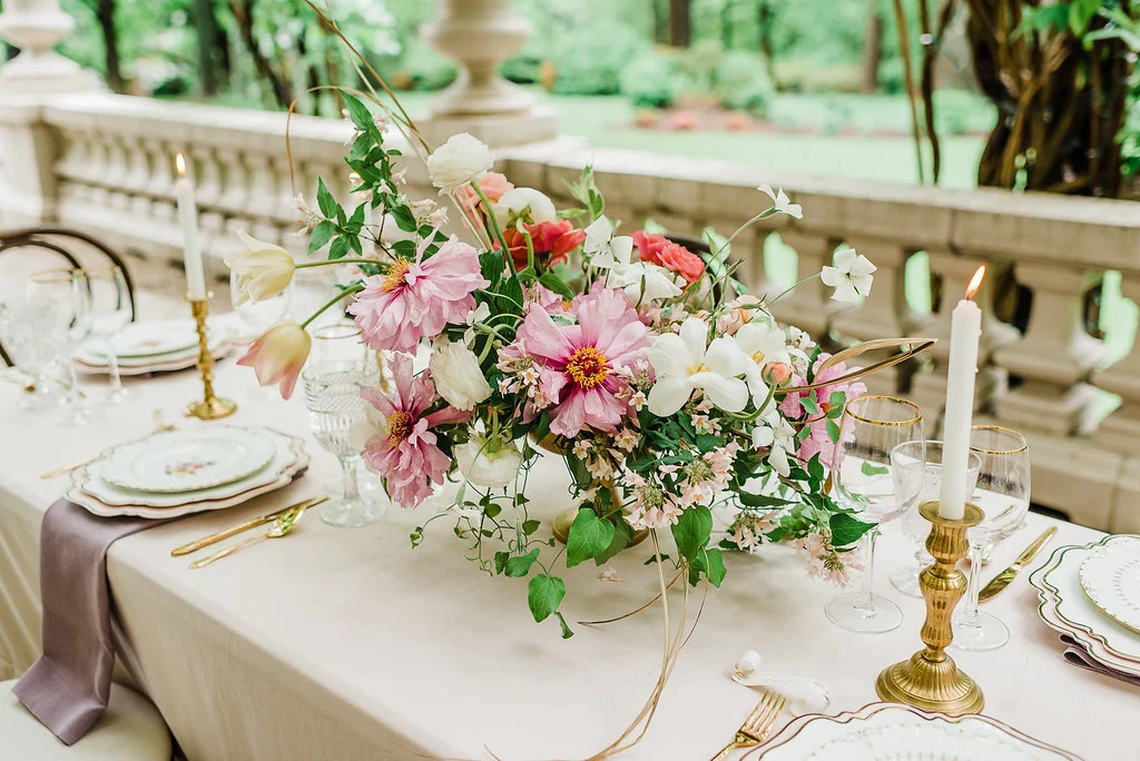 Our ceremony installation contained plenty of textures. Locally foraged frost aster, hydrangea and reed grasses made it feel like an extension of the museum’s already gorgeous waterfront setting. While the lush garden roses, towering delphinium and dainty orchids gave it a special, luxe touch.