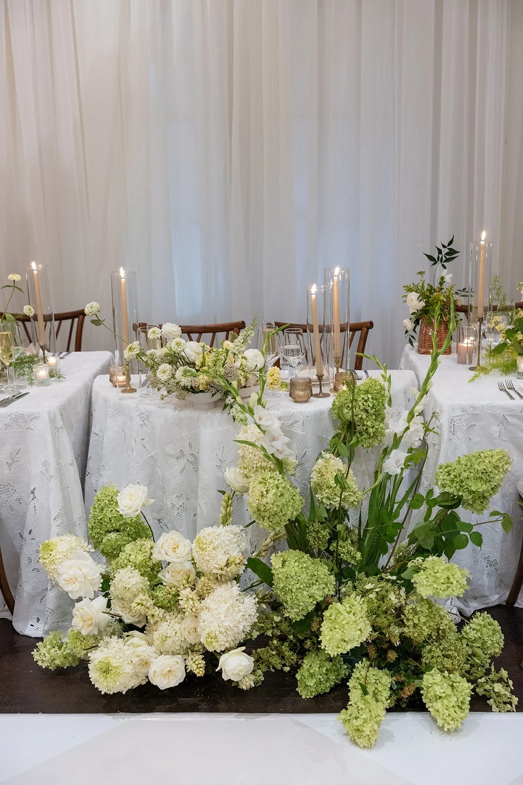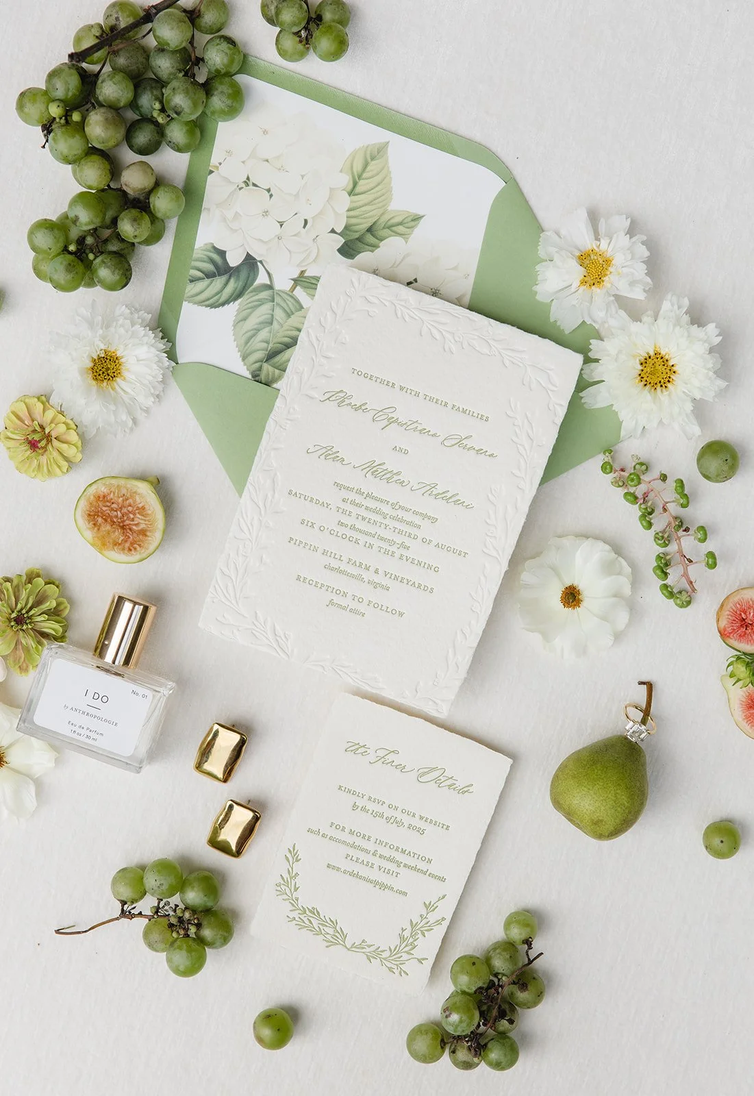 Phoebe & Adam picked a natural color palette that reflected the seasonal landscape at Pippin for late summer. We like to call this palette “complex neutral” because it’s richer than just white and green, but still reads as neutral.